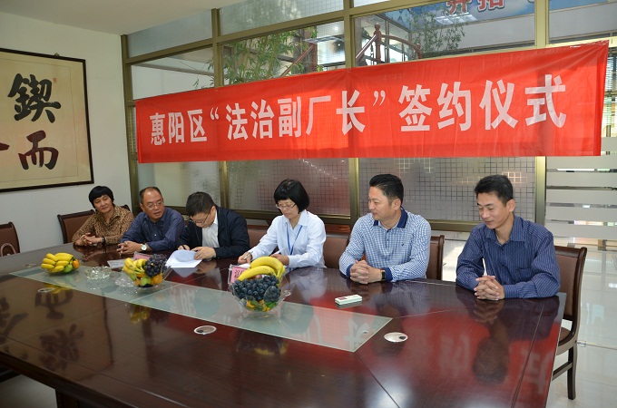11月2日,在區總工會(huì )、區司法局、淡水工會(huì )的關(guān)懷和共同見(jiàn)證下,裕華集團工會(huì )和廣東德鄰律師事務(wù)所,在裕華集團八樓會(huì )議室簽訂了“法制副廠(chǎng)長(cháng)”的聘用協(xié)議。