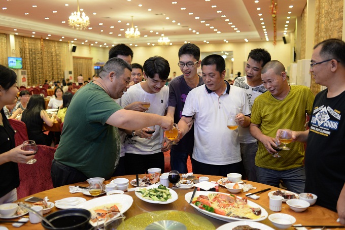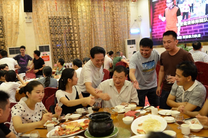 席至盡興處,董事長(cháng)親自為大家倒酒